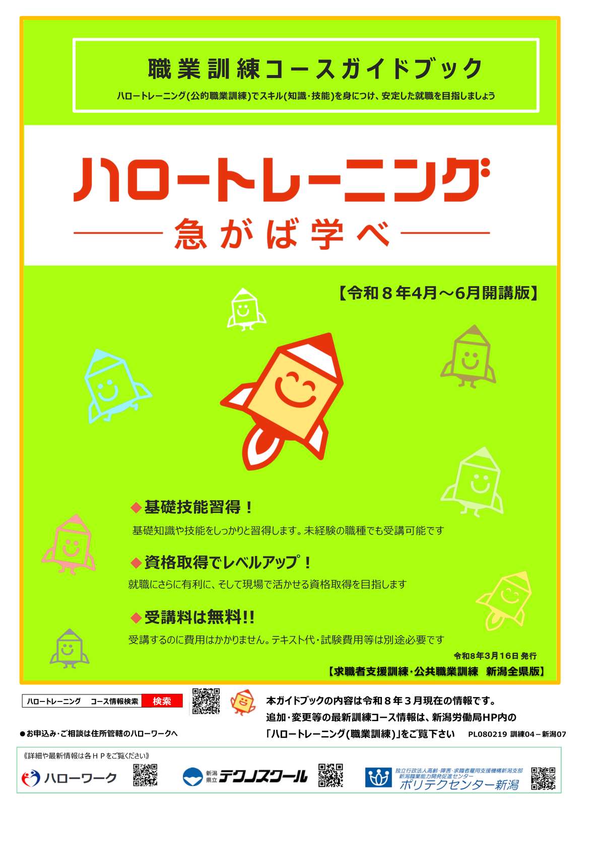 新潟県内の訓練開講予定