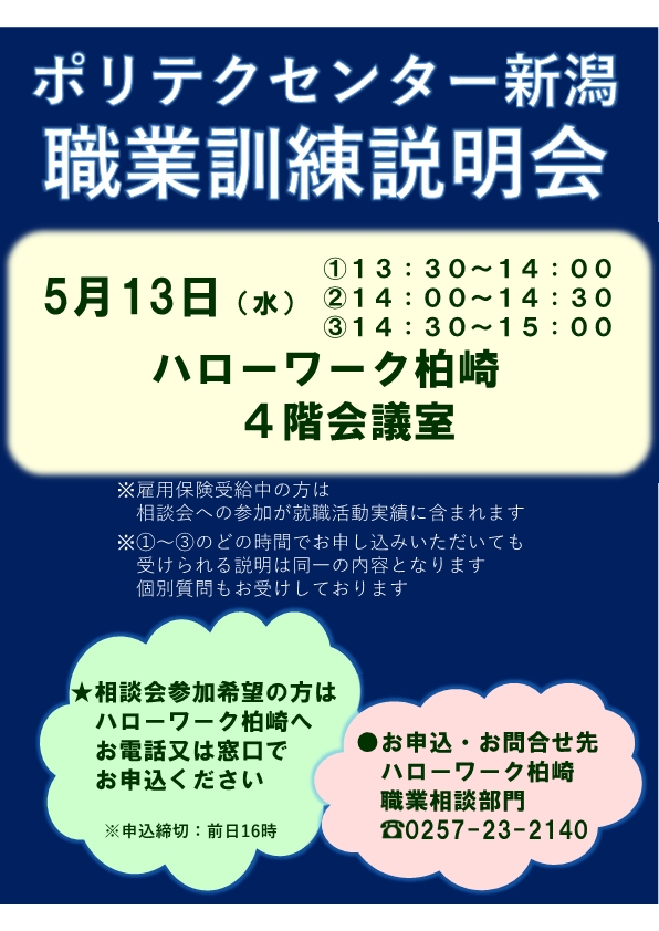 ハローワーク柏崎 訓練説明会のご案内