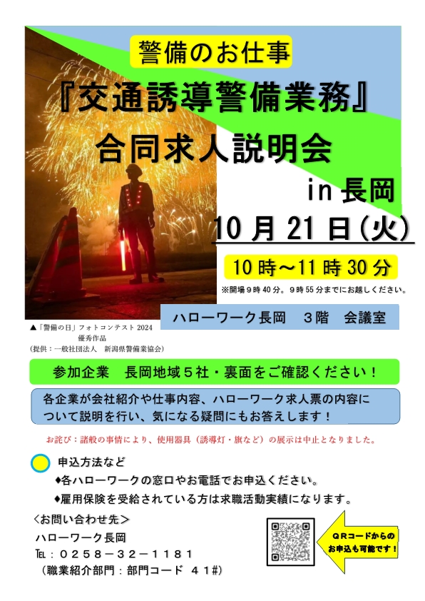 長岡地域の警備業5社が集まり、合同求人説明会を開催いたします。