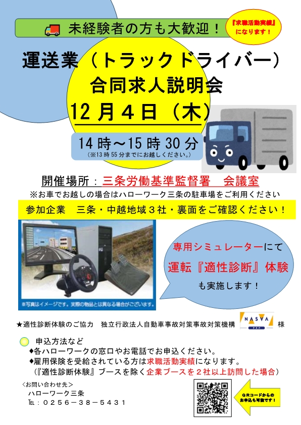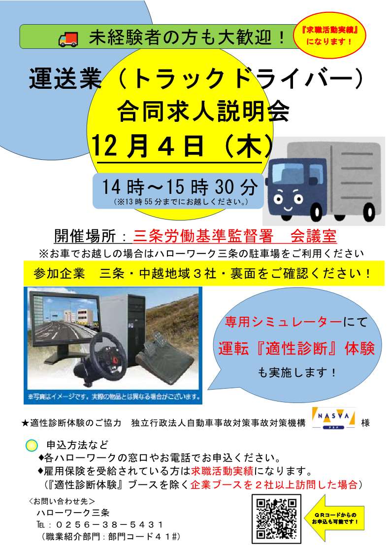 運送業(トラックドライバー)合同求人説明会(三条会場)