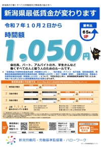 令和7年10月2日から新潟県の最低賃金は1,050円になります。