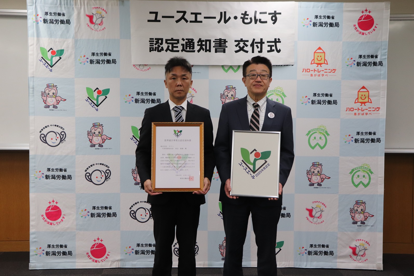 このたび新潟労働局において、「ユースエール認定通知書交付式」が行われました。