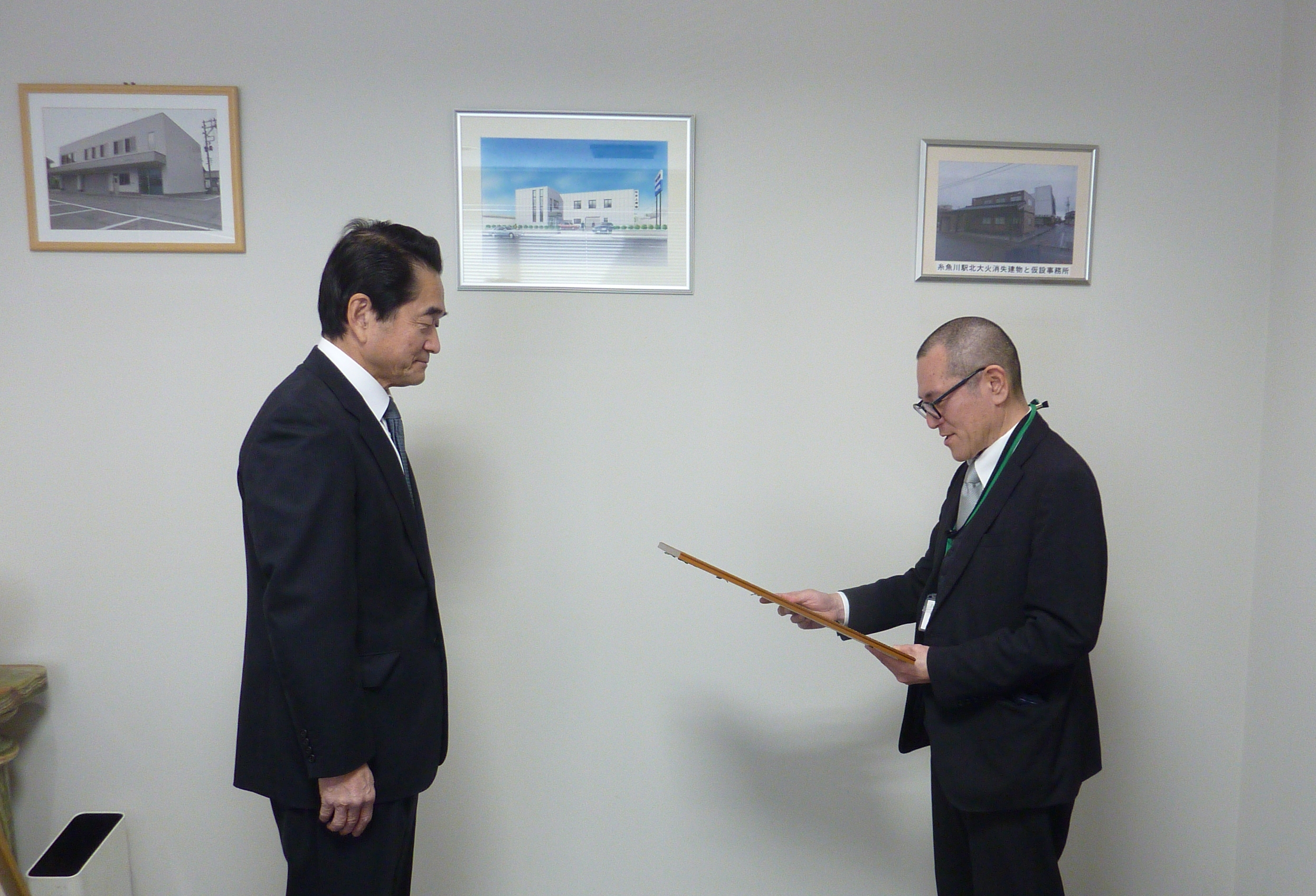この度、ユースエール認定企業として上越市の「株式会社室岡林業」・「株式会社源建設」が認定され、認定書が交付されました。