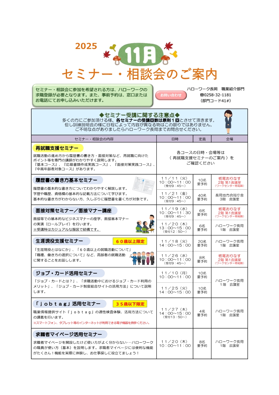 求人、職業相談・紹介、助成金に関すること…業務部長(0258-32-1181 41#)
