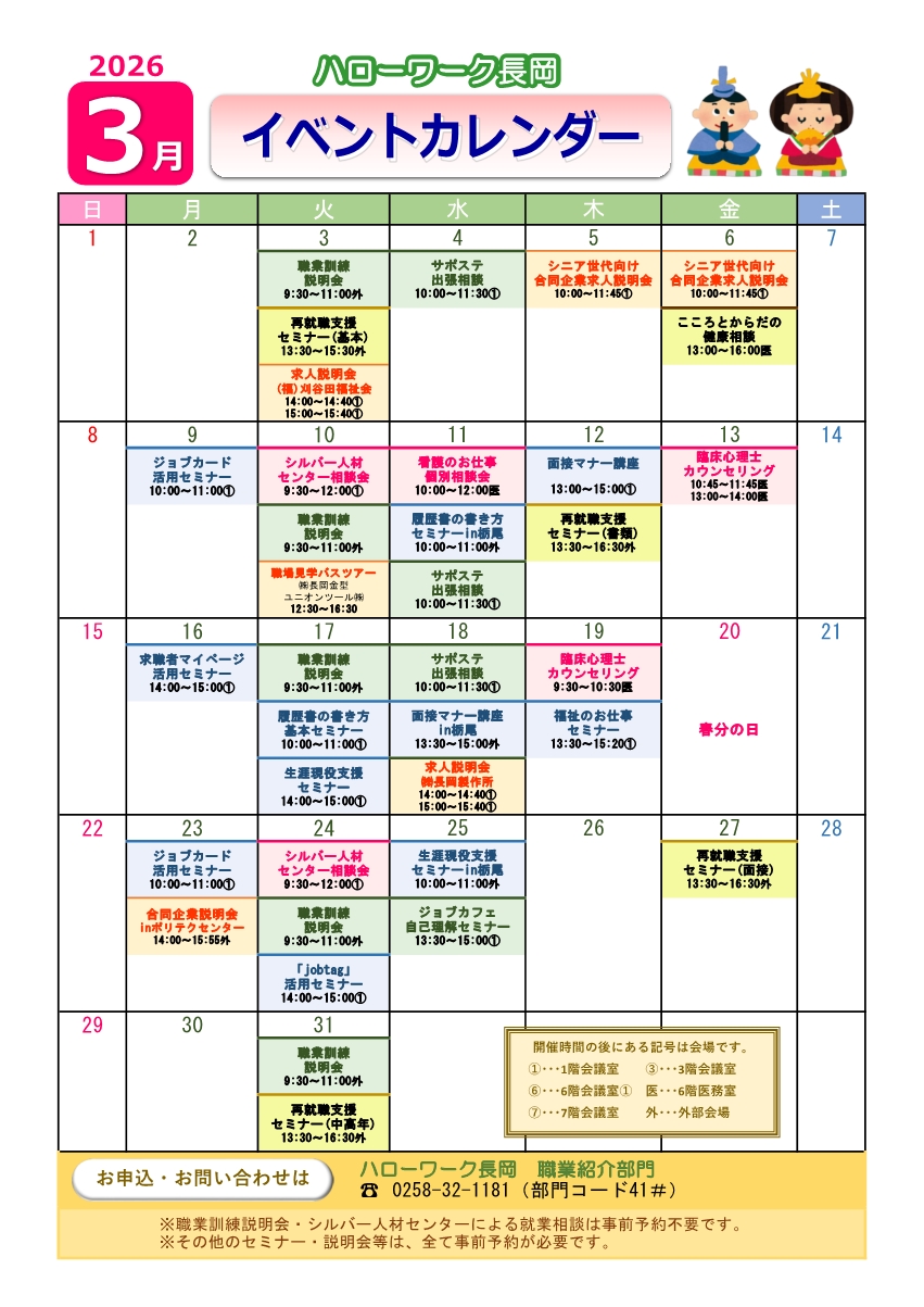 ハローワーク長岡は引き続き、説明会や見学会などのイベントを開催していきます。