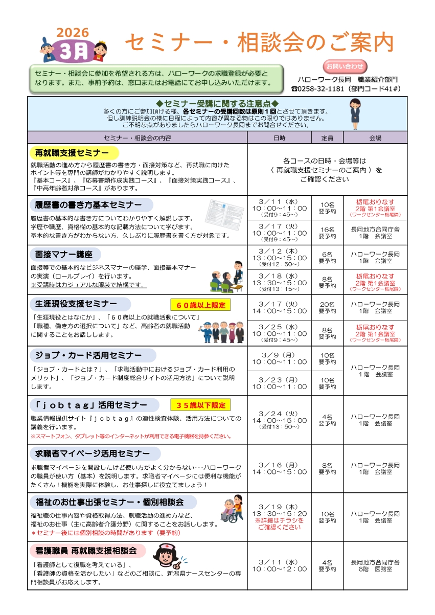 ハローワーク長岡からお知らせ