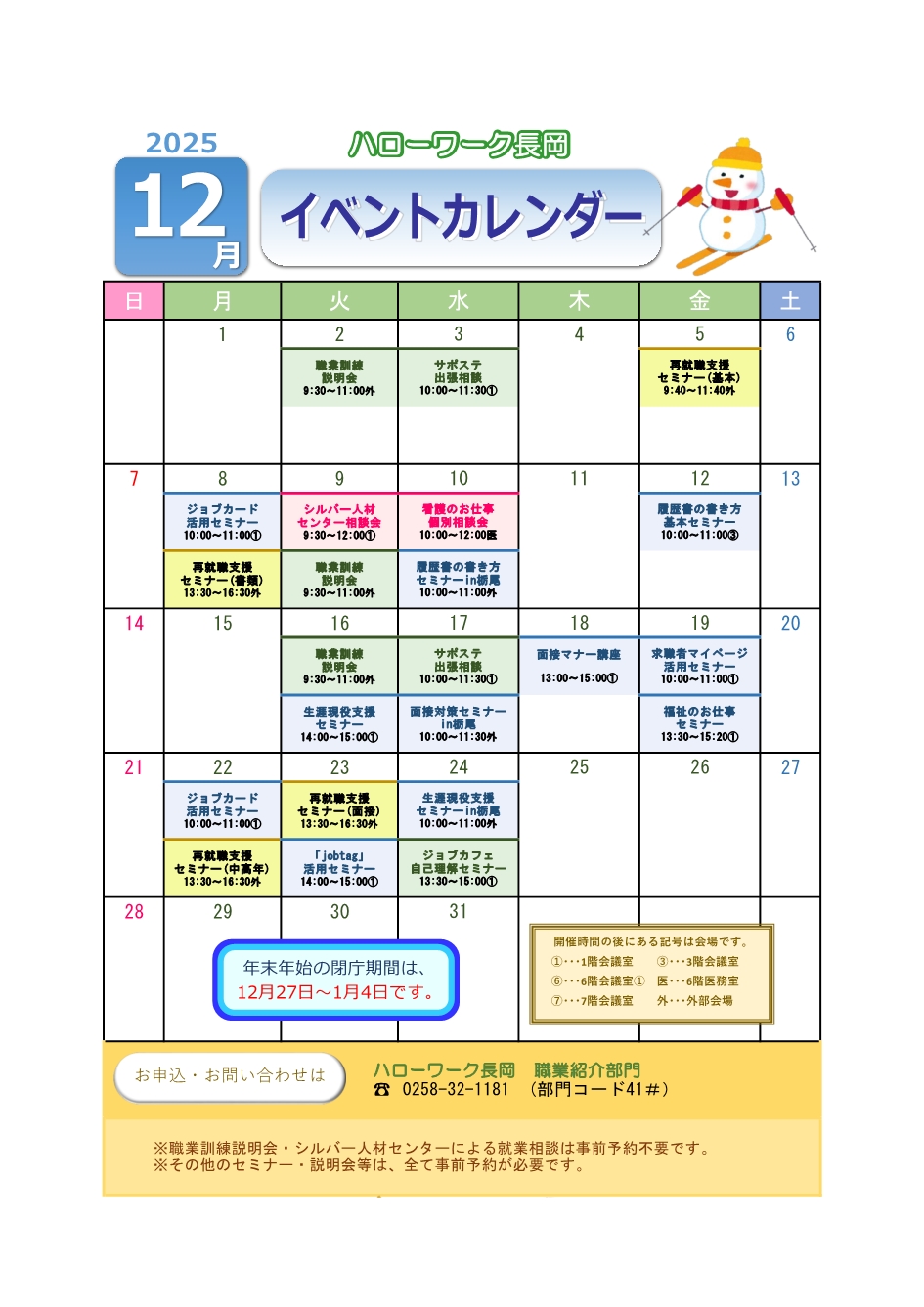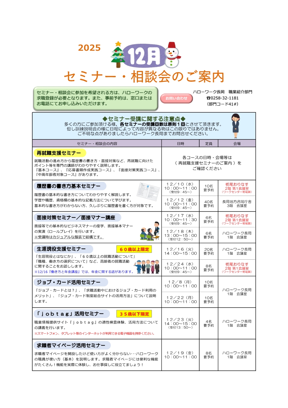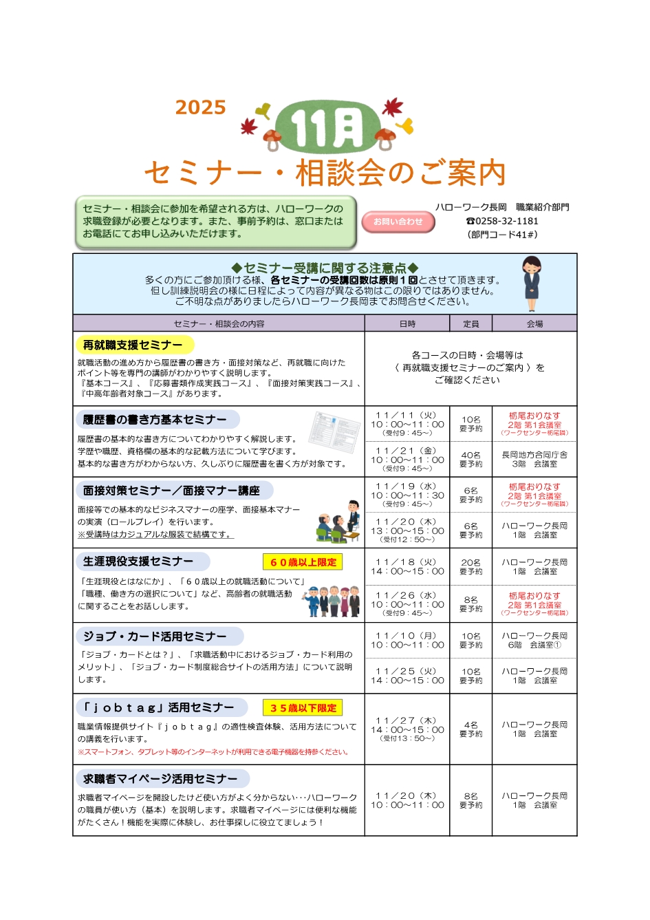 求人、職業相談・紹介、助成金に関すること…業務部長(0258-32-1181 41#)