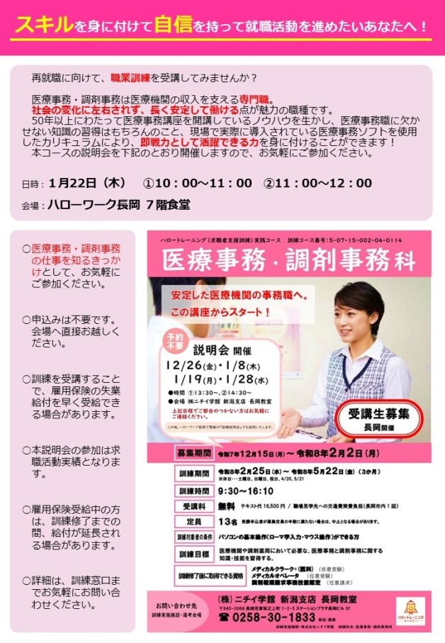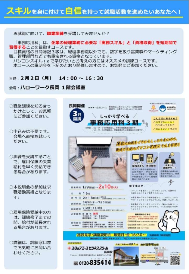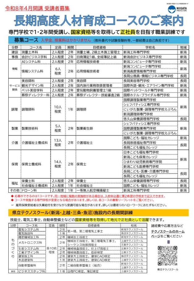 長岡所管内で募集中の訓練コースについて
