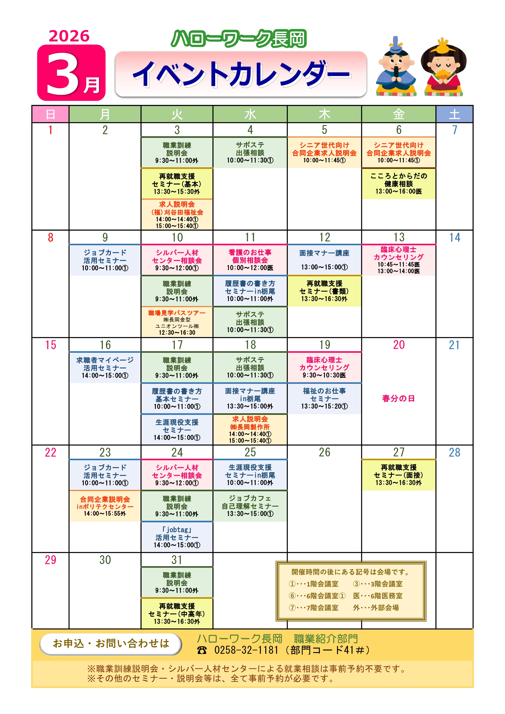 ハローワーク長岡 職業紹介部門 0258-32-1181(41#)