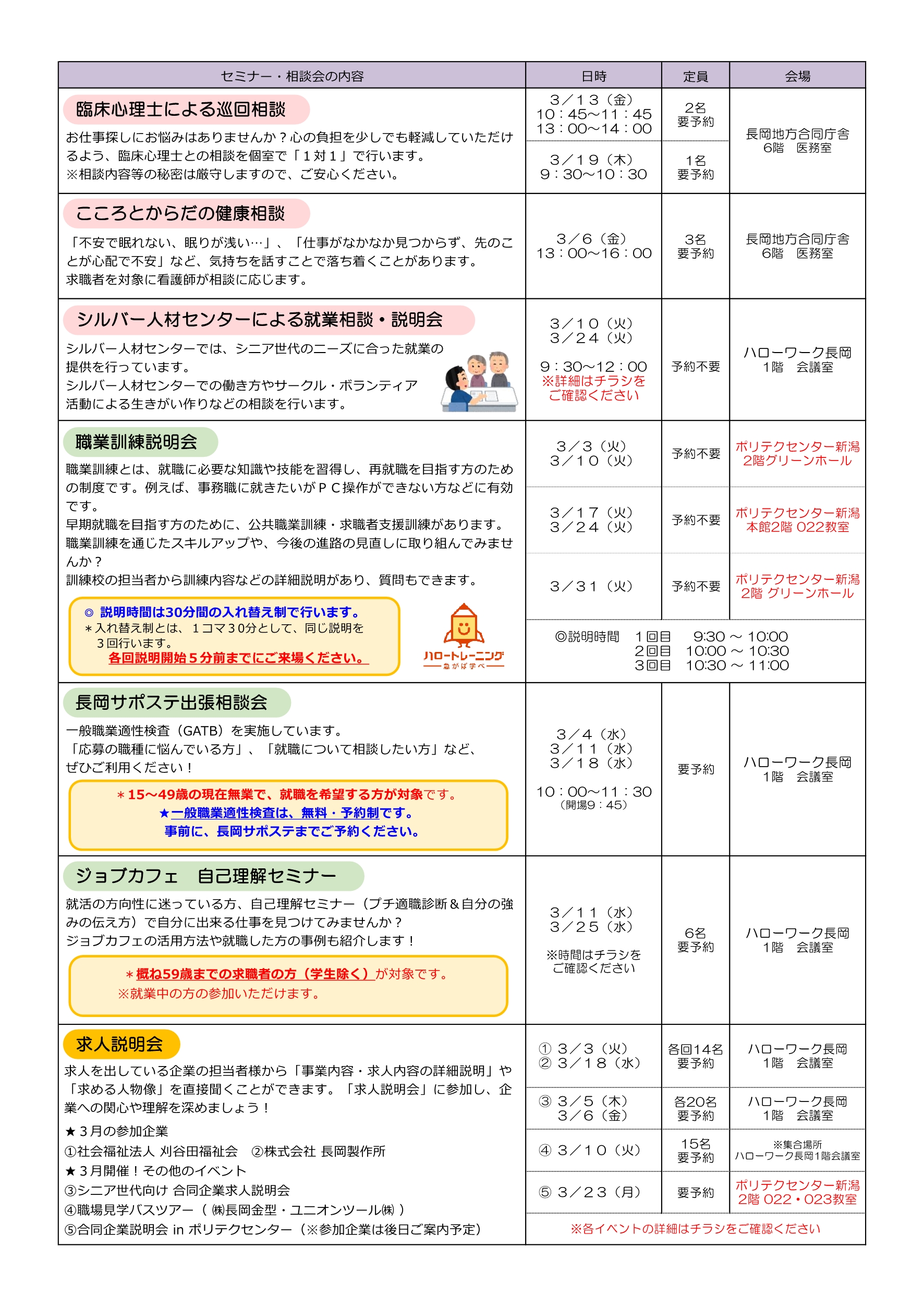 ハローワーク長岡 専門援助部門 0258-32-1181(42#)