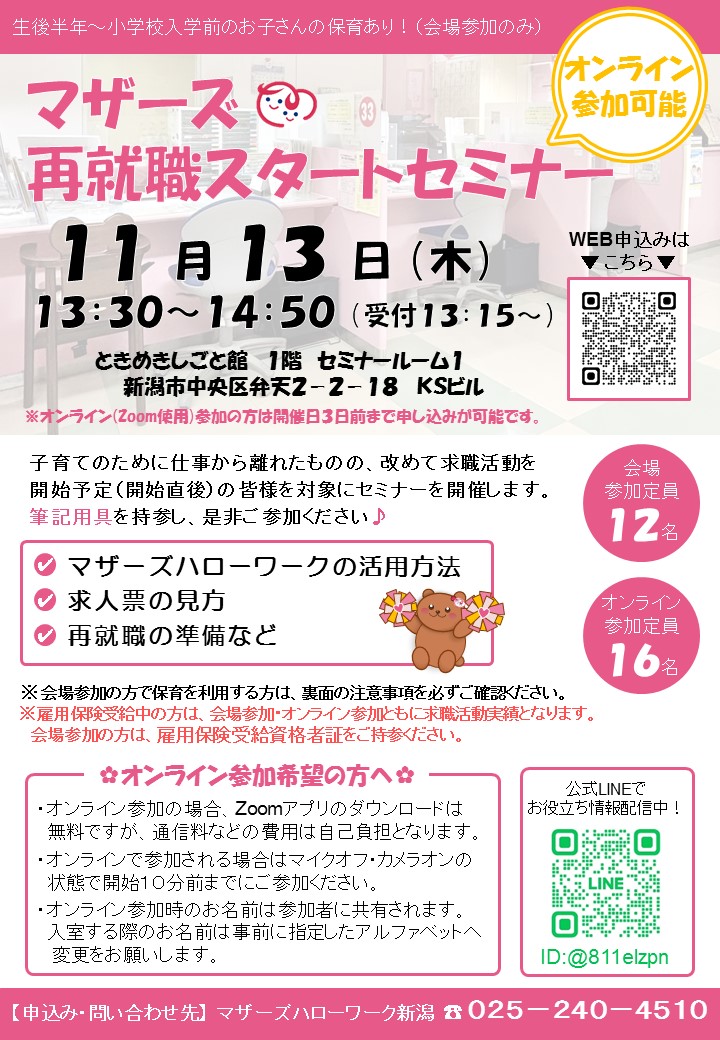 マザーズハローワーク新潟 TEL025-240-4510