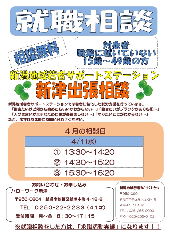 新潟地域若者サポートステーション新津出張相談