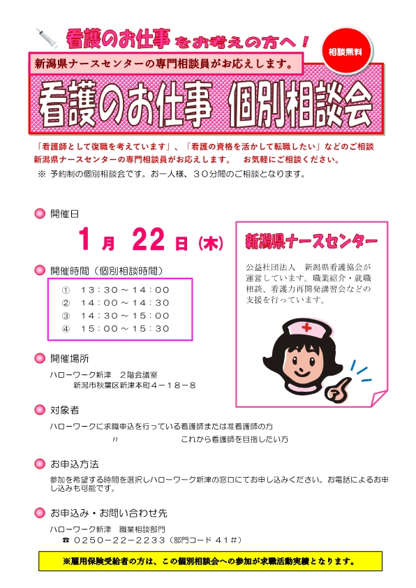 職業紹介・就職相談、看護力再開発講習会など支援を行っています。