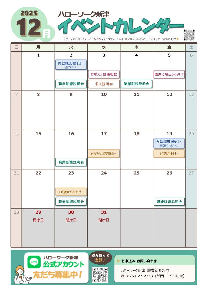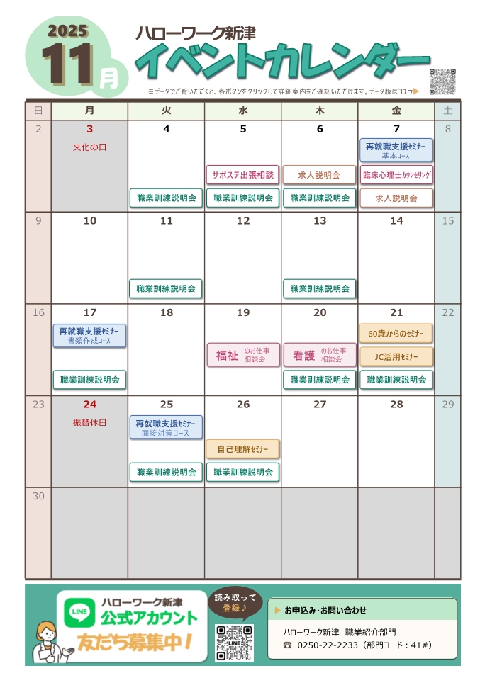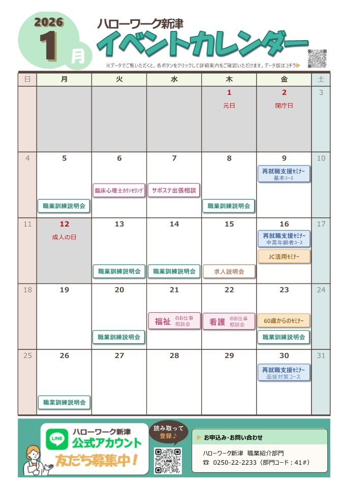 各月で開催予定のセミナーや説明会等を一覧でご覧いただけます。