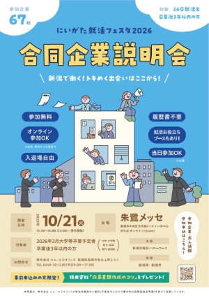 新潟労働局では、大学等新卒・第二新卒向けの合同企業説明会「にいがた就活フェスタ2026」を開催します!