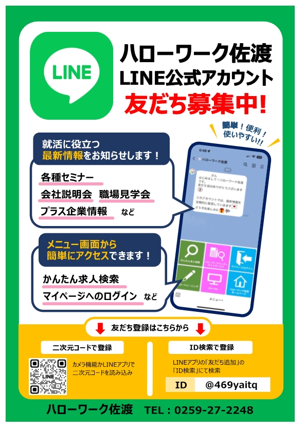ハローワーク佐渡の公式LINEができました!
