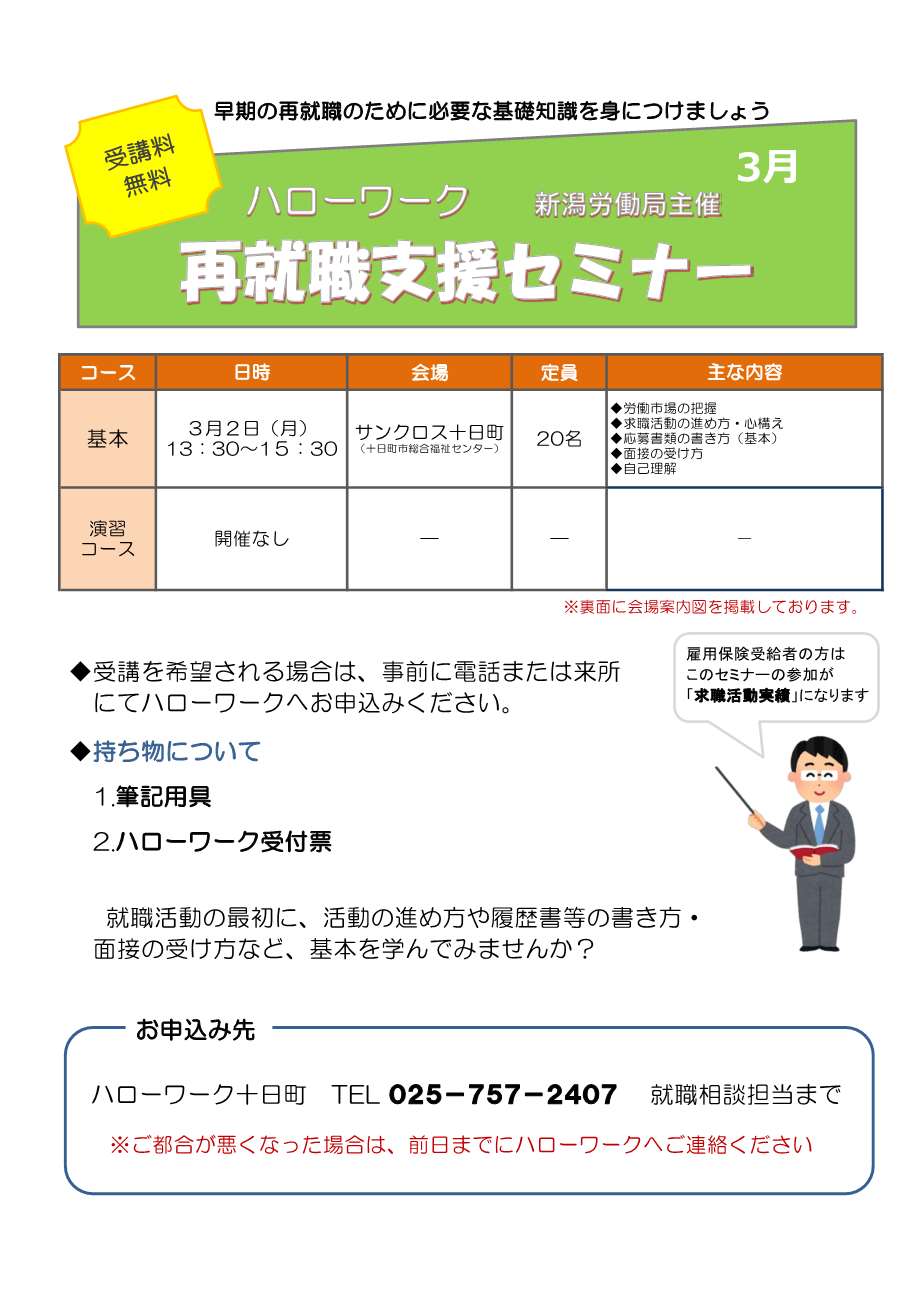 再就職支援セミナーのご案内 3月分