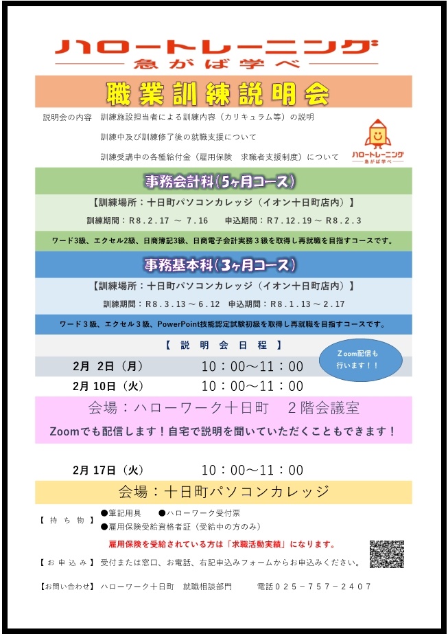 興味がある方は職業訓練説明会に参加ください!