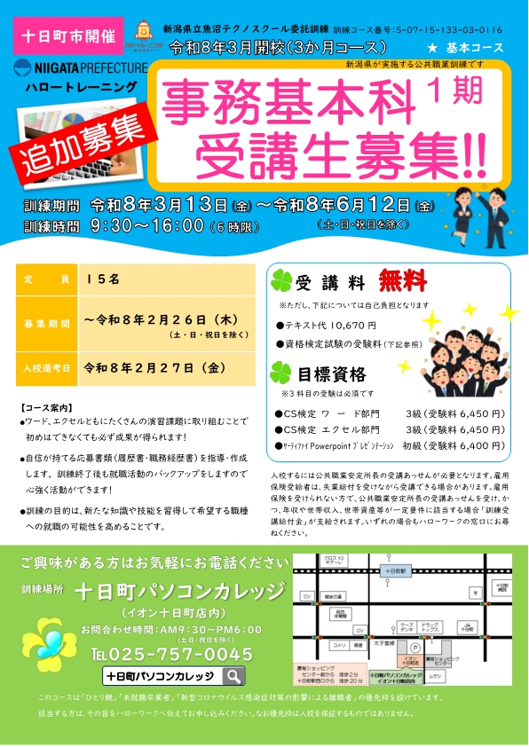 事務基本科  職業訓練説明会 (追加)