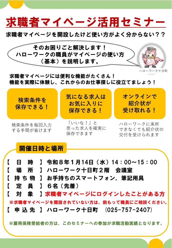 - 求職者マイページ活用セミナーのご案内