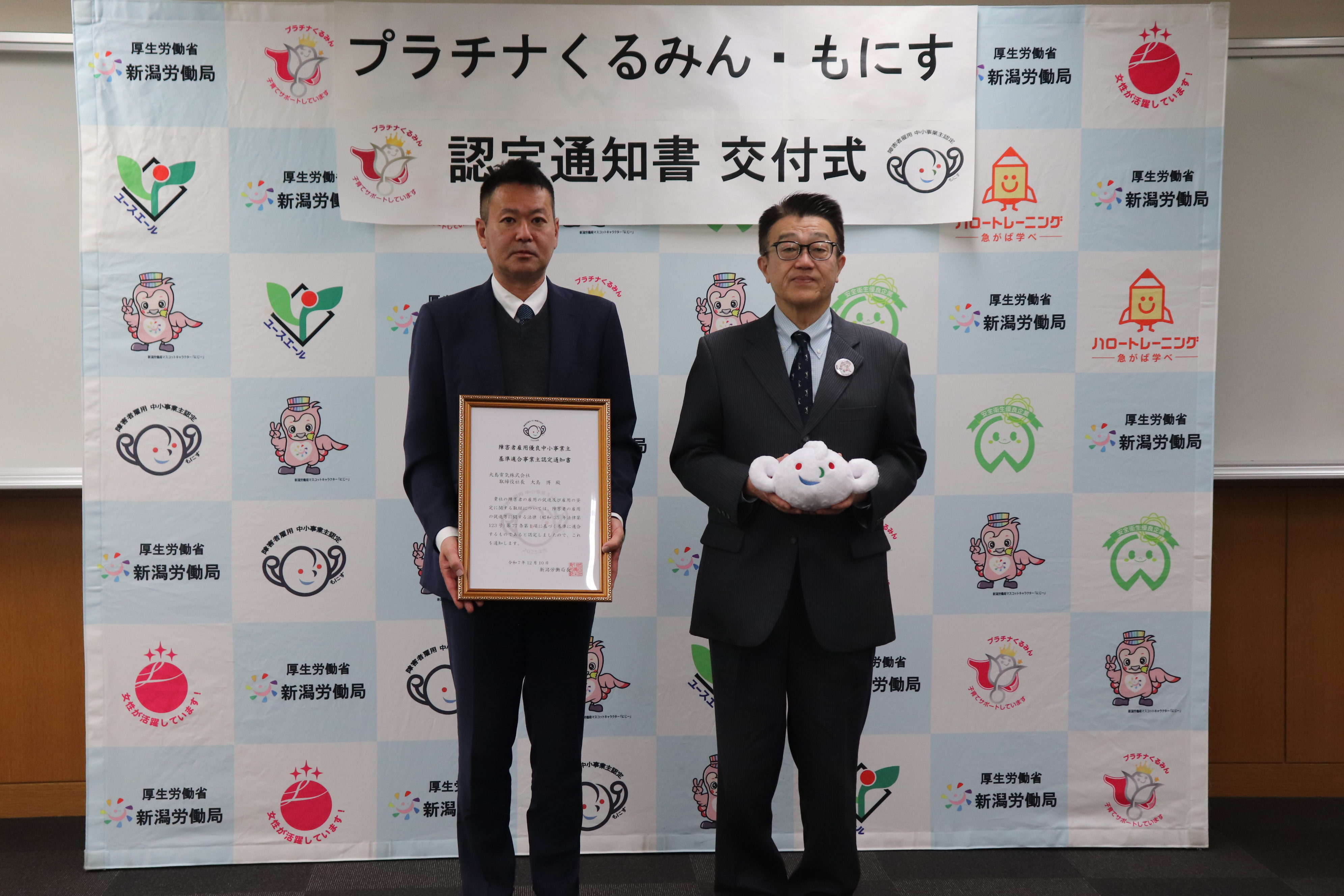 大島電気株式会社 様がもにす認定企業に認定され、新潟労働局長から