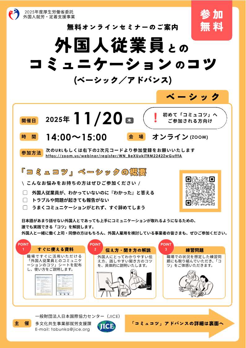 外国人と一緒に働く上司・同僚の方はもちろん、外国人雇用を検討している事業者の皆さまも、