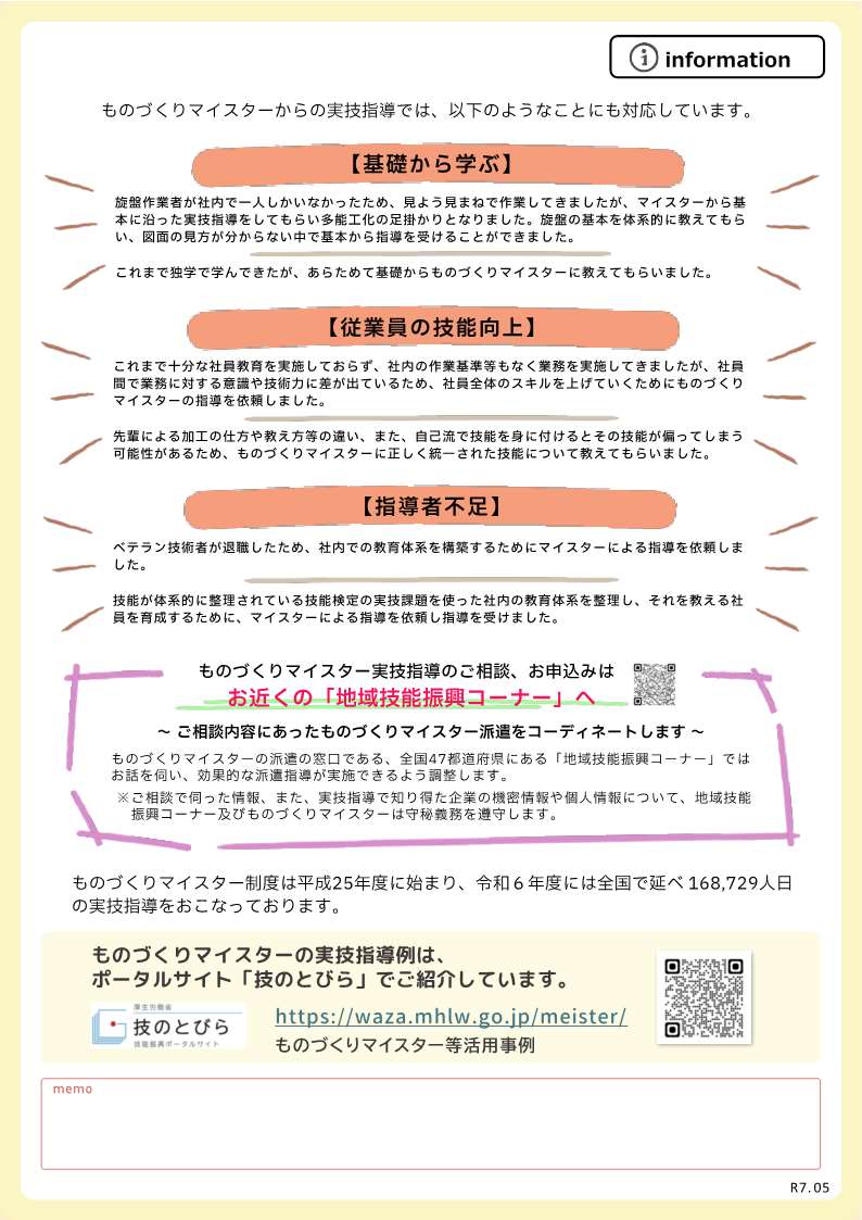 ものづくりマイスター実技指導のご相談、お申し込み先