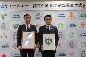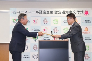 「株式会社氏田組」様(令和7年1月7日付)および「株式会社イエスト」様(令和7年1月16日付)がユースエール認定企業として認定され、新潟労働局長より認定通知書が交付されました。認定企業は令和7年1月16日現在、新潟県内で73社、ハローワーク巻管内では9社となりました。