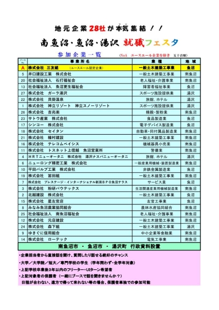 - 2027南魚沼・魚沼・湯沢就職フェスタ