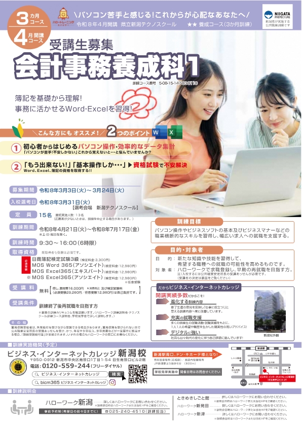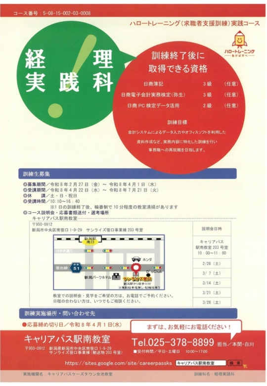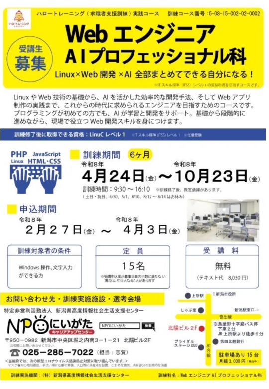 ★気になる方はハローワーク新津 職業訓練窓口まで♪