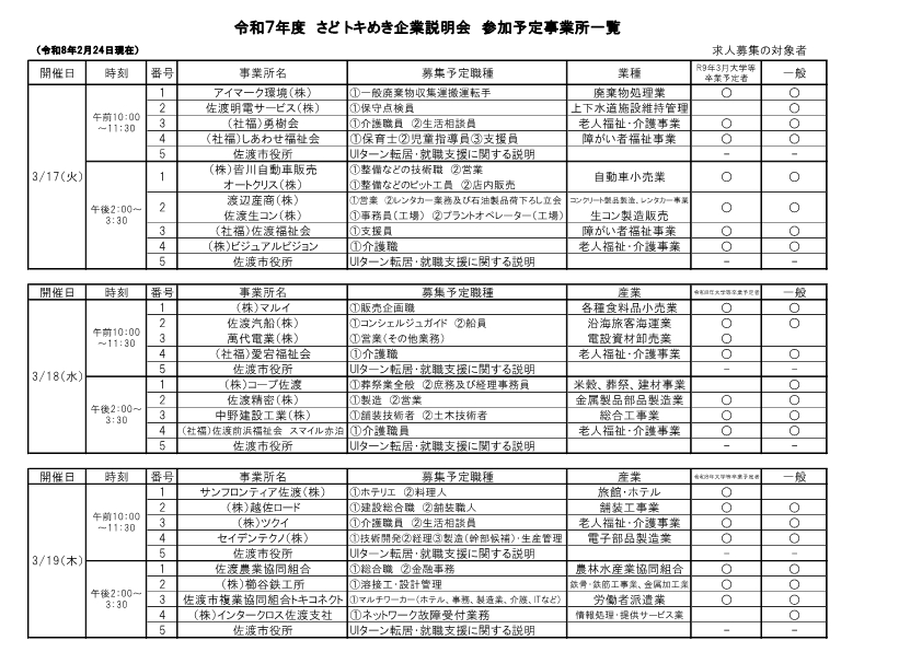さど トキめき企業説明会