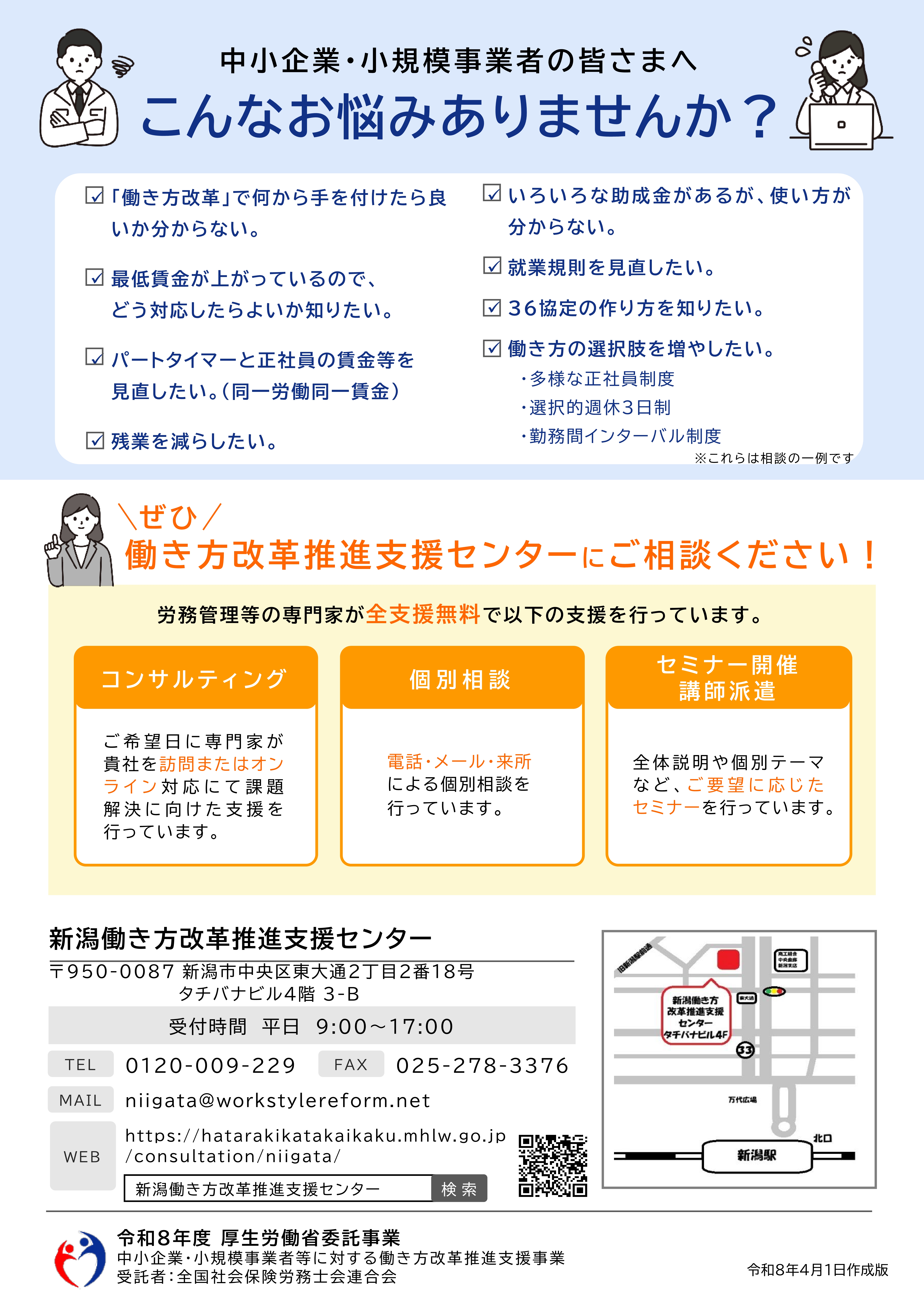 新潟働き方改革推進支援センターの公式ウェブサイトは、上記の働き方改革特設サイトのみです。