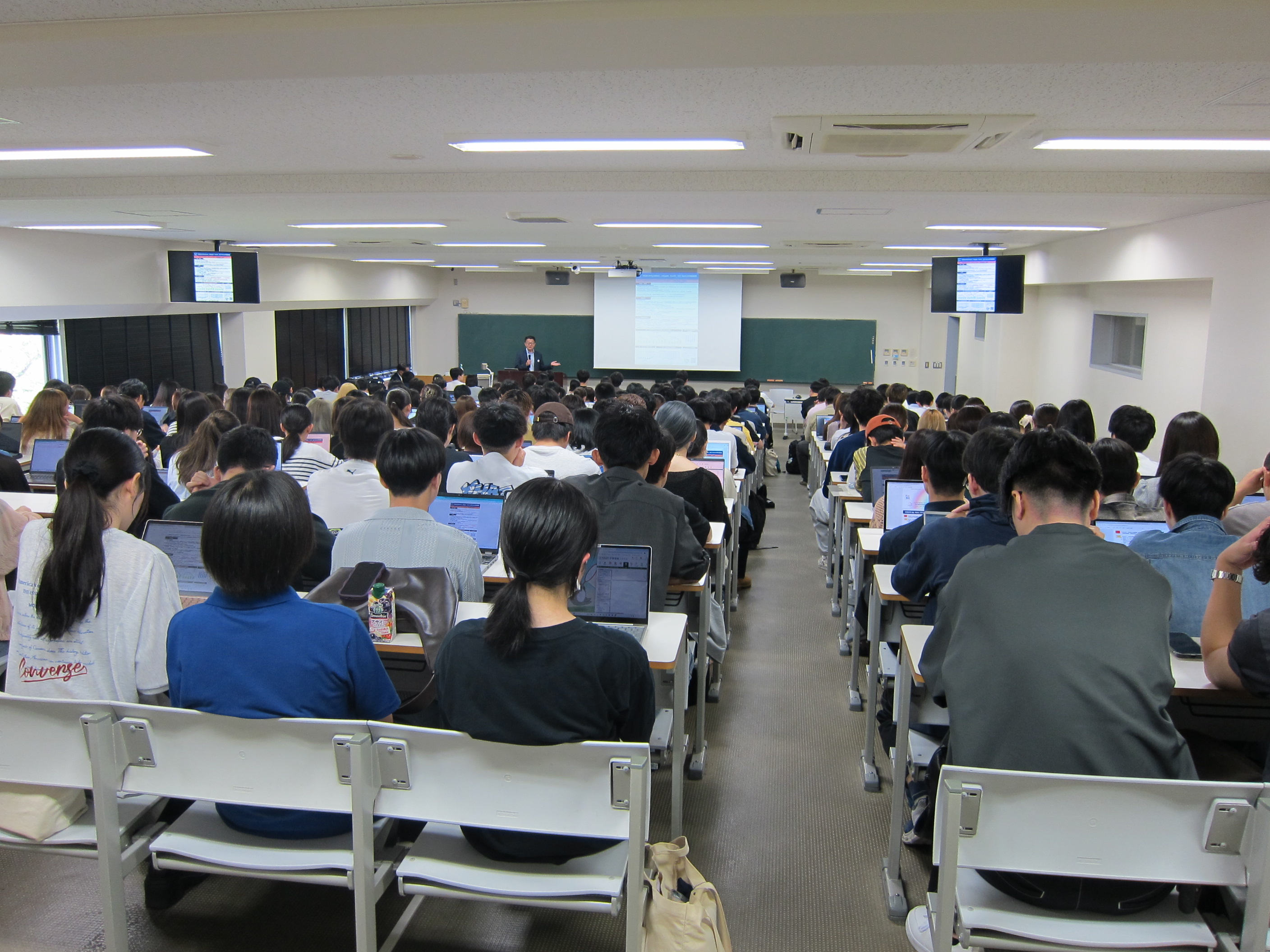 この日は全15回の講義のうち第1回で、福岡局長が「現下の情勢下における労働分野の諸課題と労働行政の取組」と題して、新潟大学の全学年から受講を希望した学生205人に講義を行いました。