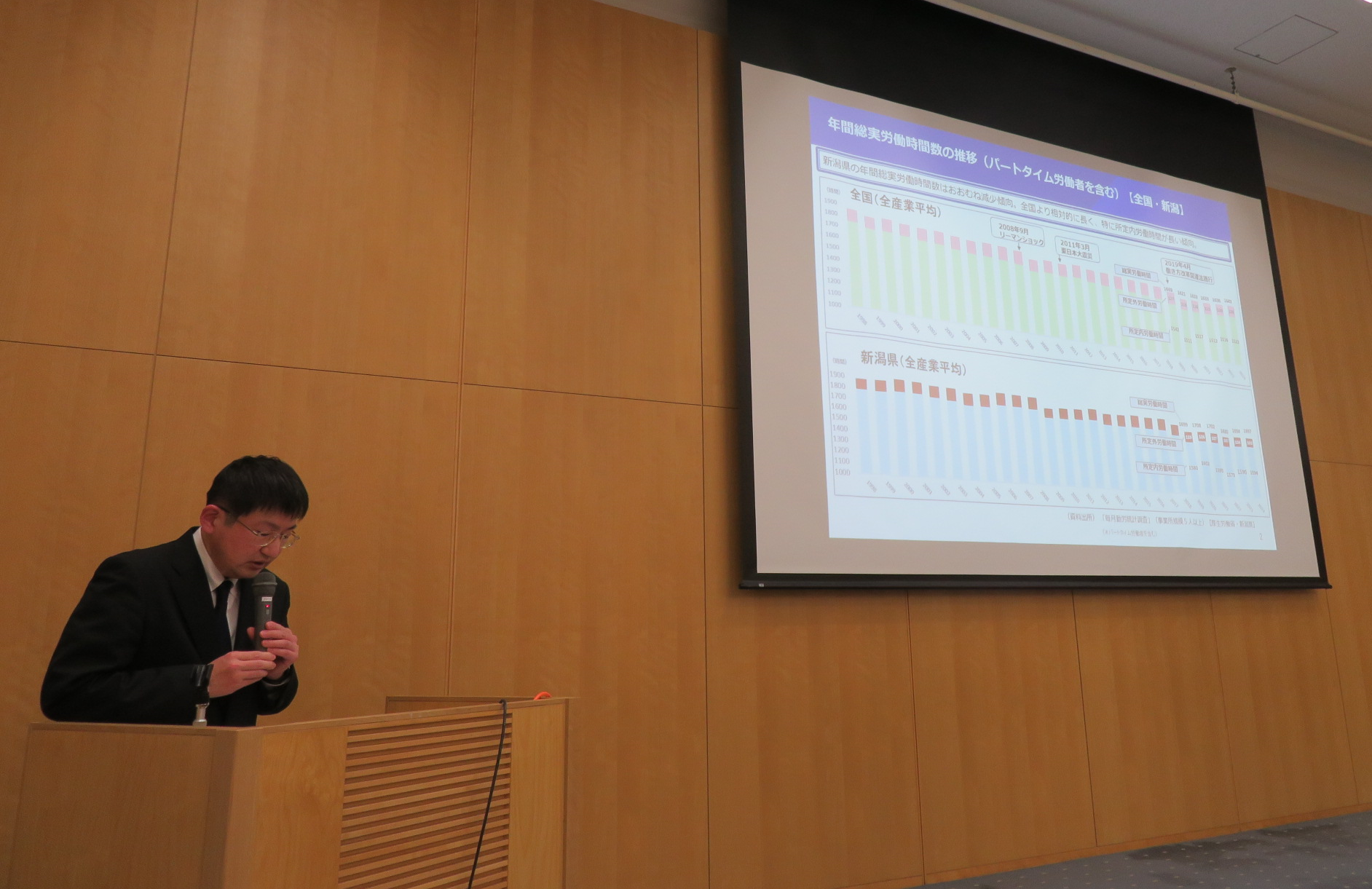 | 【基調講演】の様子 | 新潟労働局からの現状説明 |