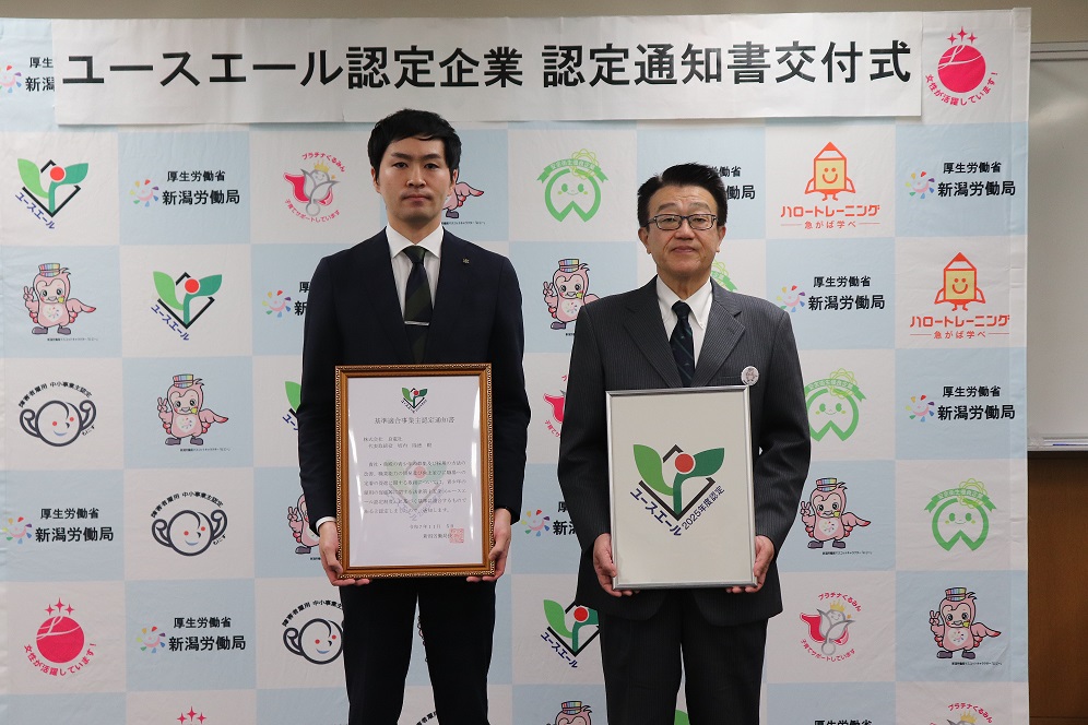 労働人口の減少が喫緊の課題となる昨今の状況において、この度のユースエール認定は、当社の事業継続においても非常に大きな意味を持ちます。