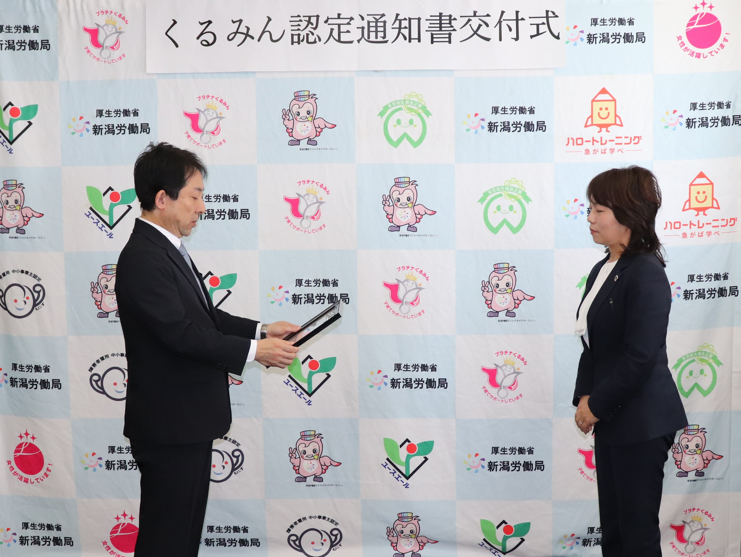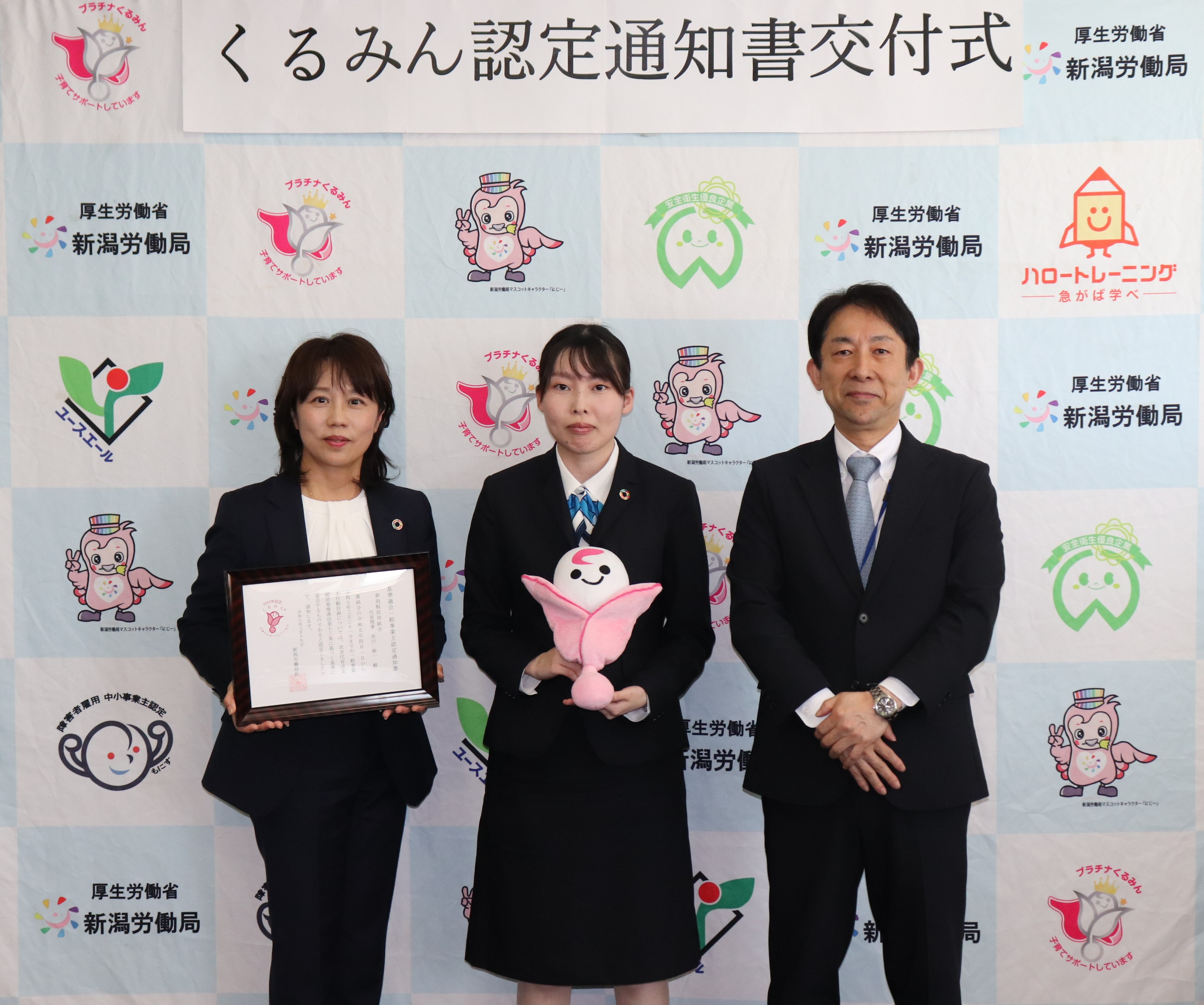 新潟縣信用組合様に「くるみん認定通知書」を交付しました。