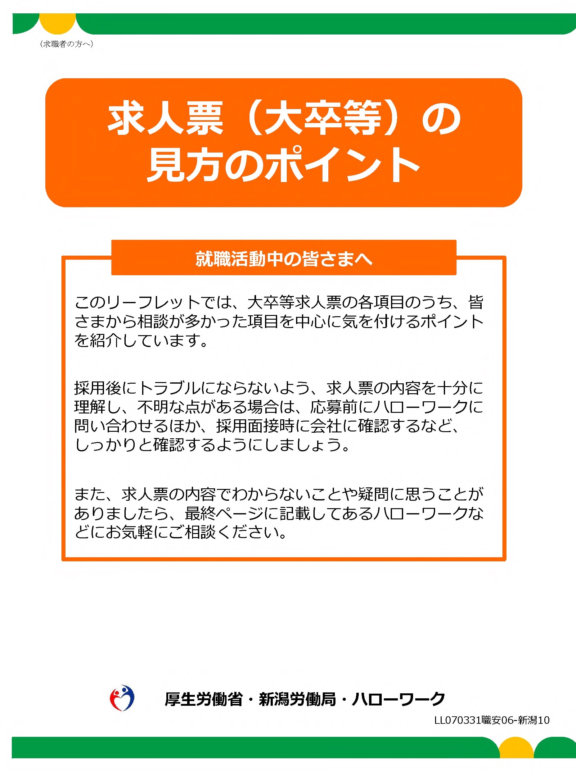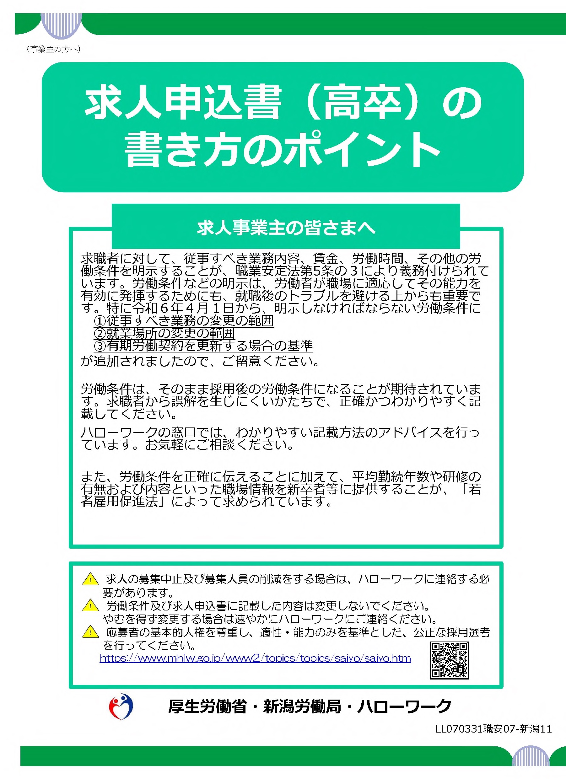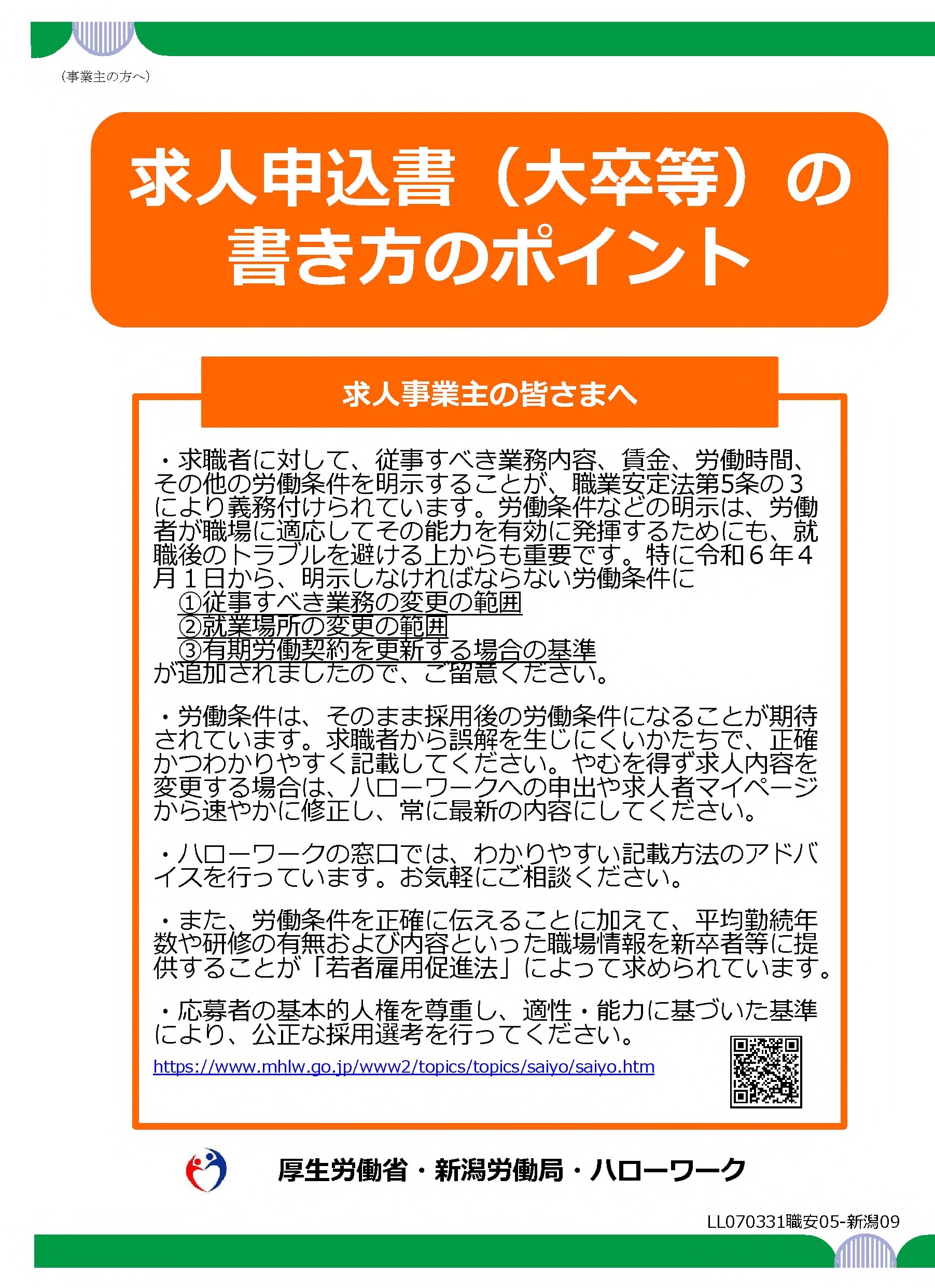 求人票(大卒等)の見方のポイント | 求人票(大卒等)の書き方のポイント |