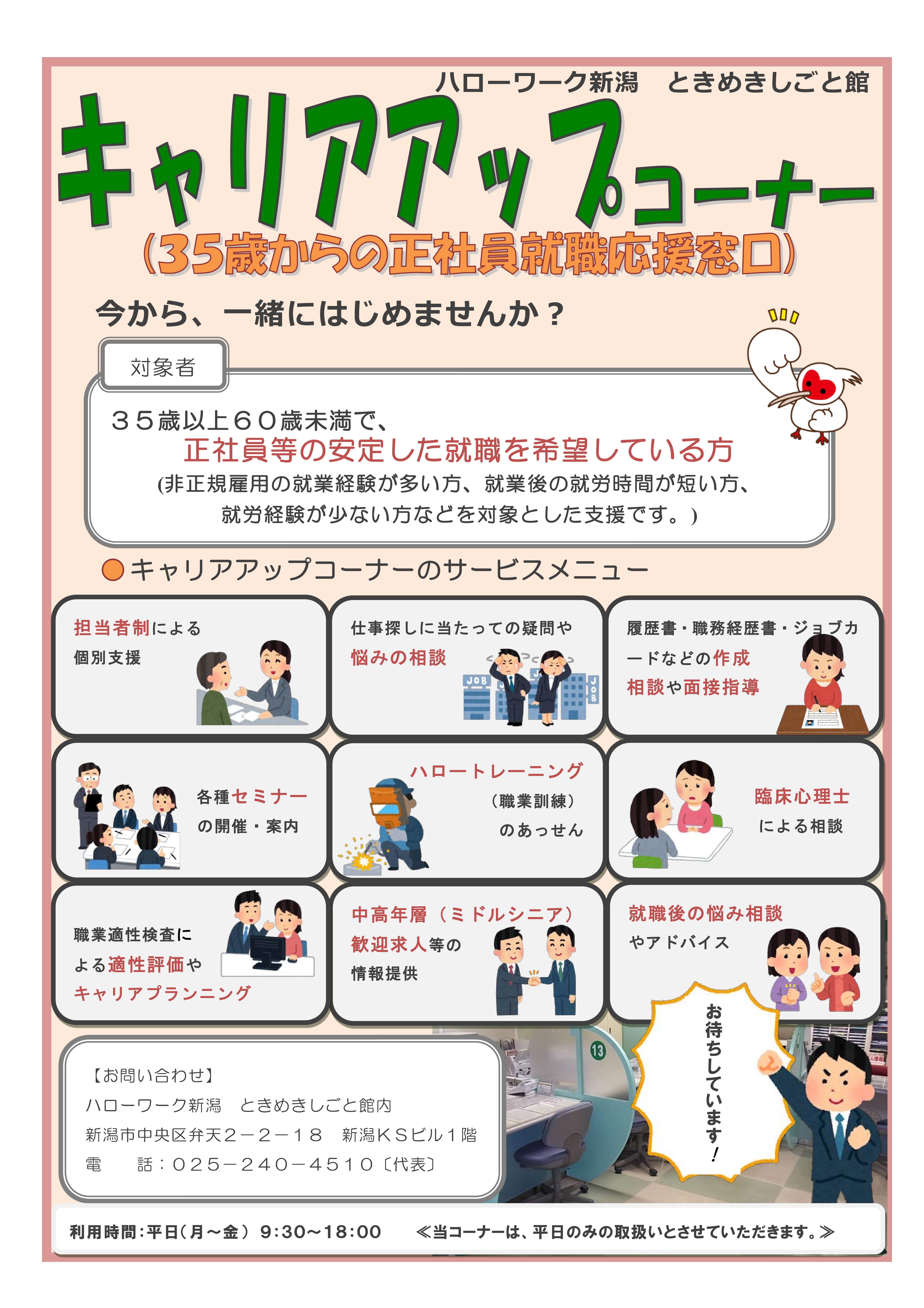 | キャリアアップコーナー(35歳からの正社員応援窓口)のご案内 | ||||