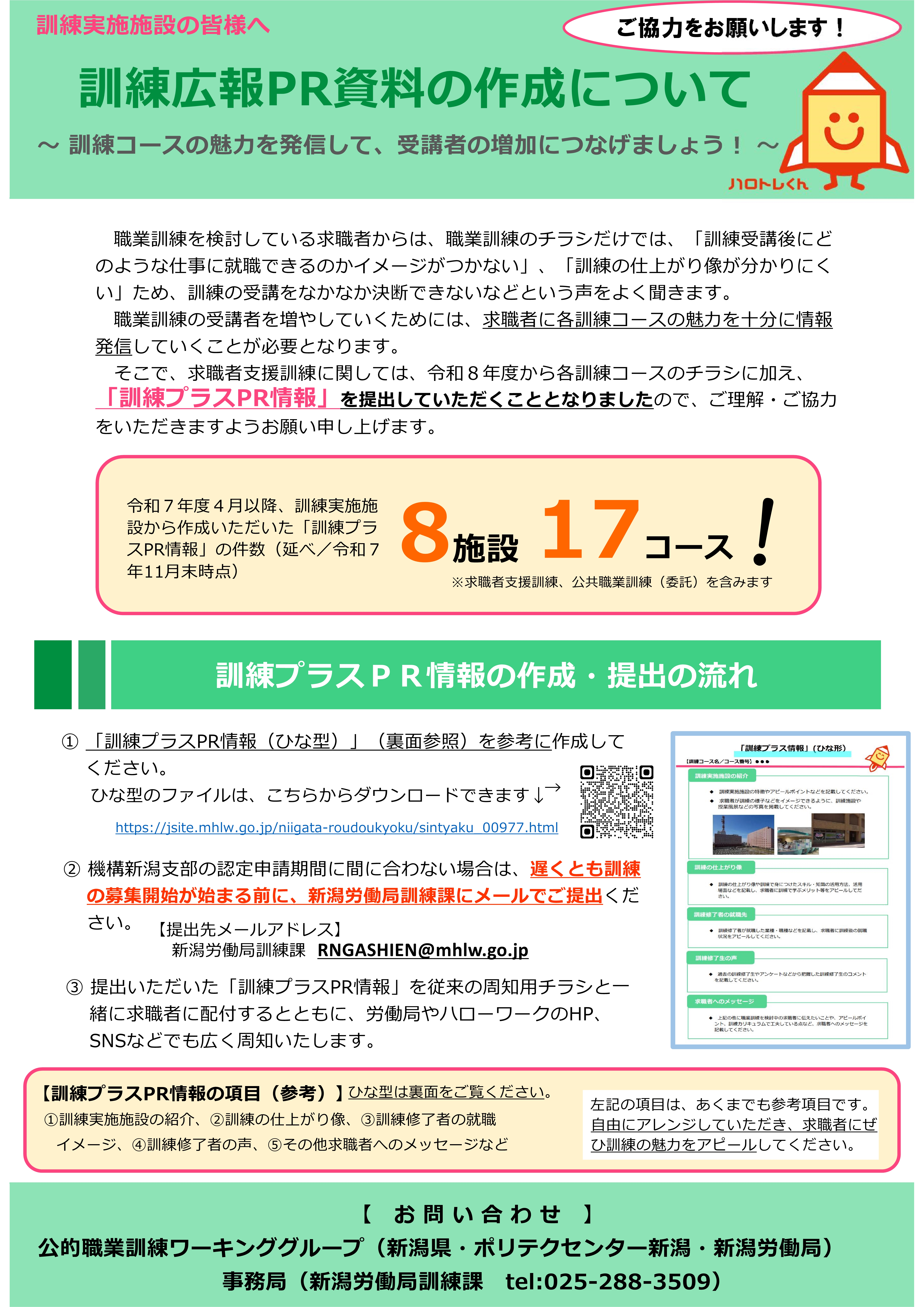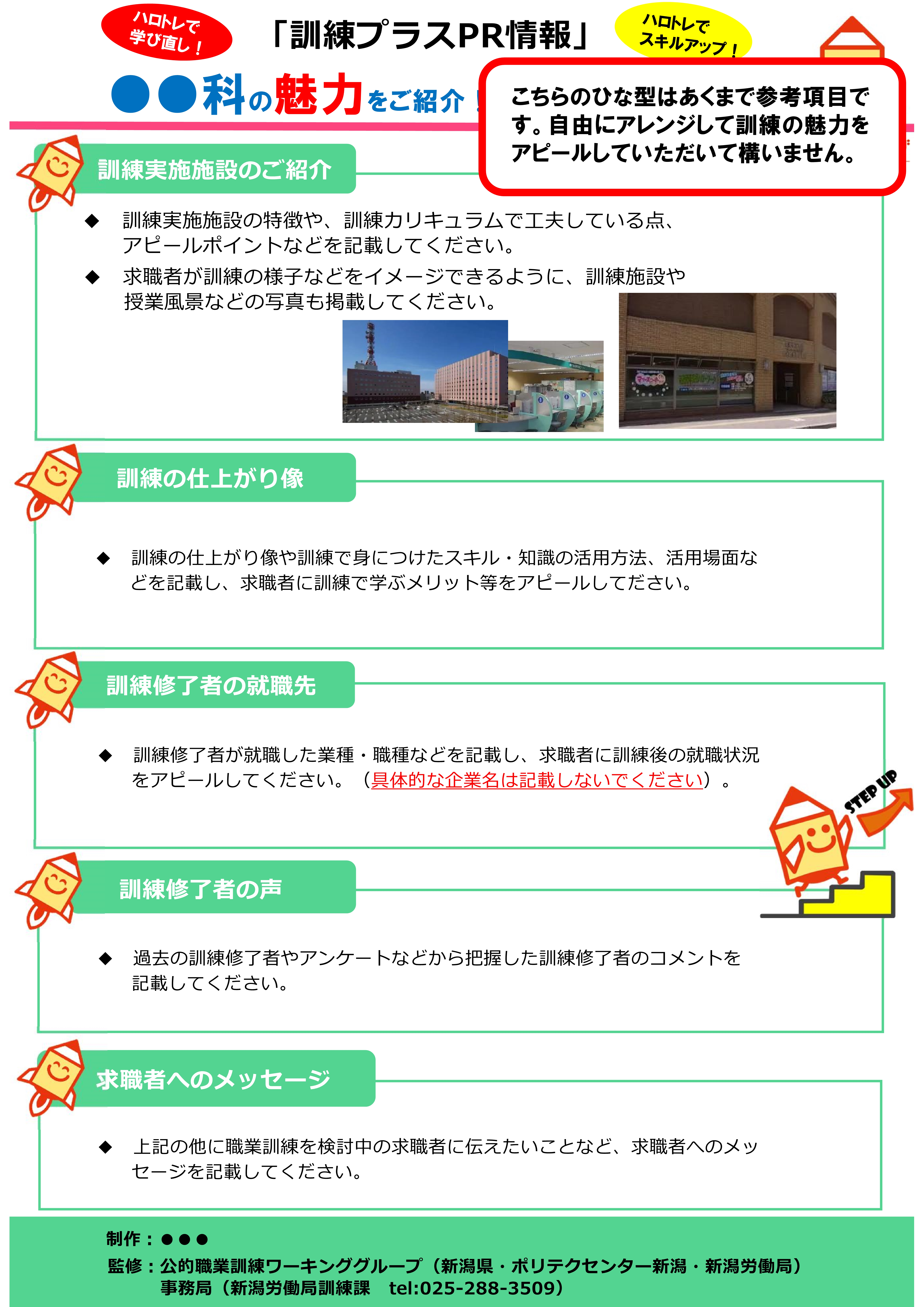 → 「訓練プラスPR情報」のフォーマットはこちらからダウンロードしてください