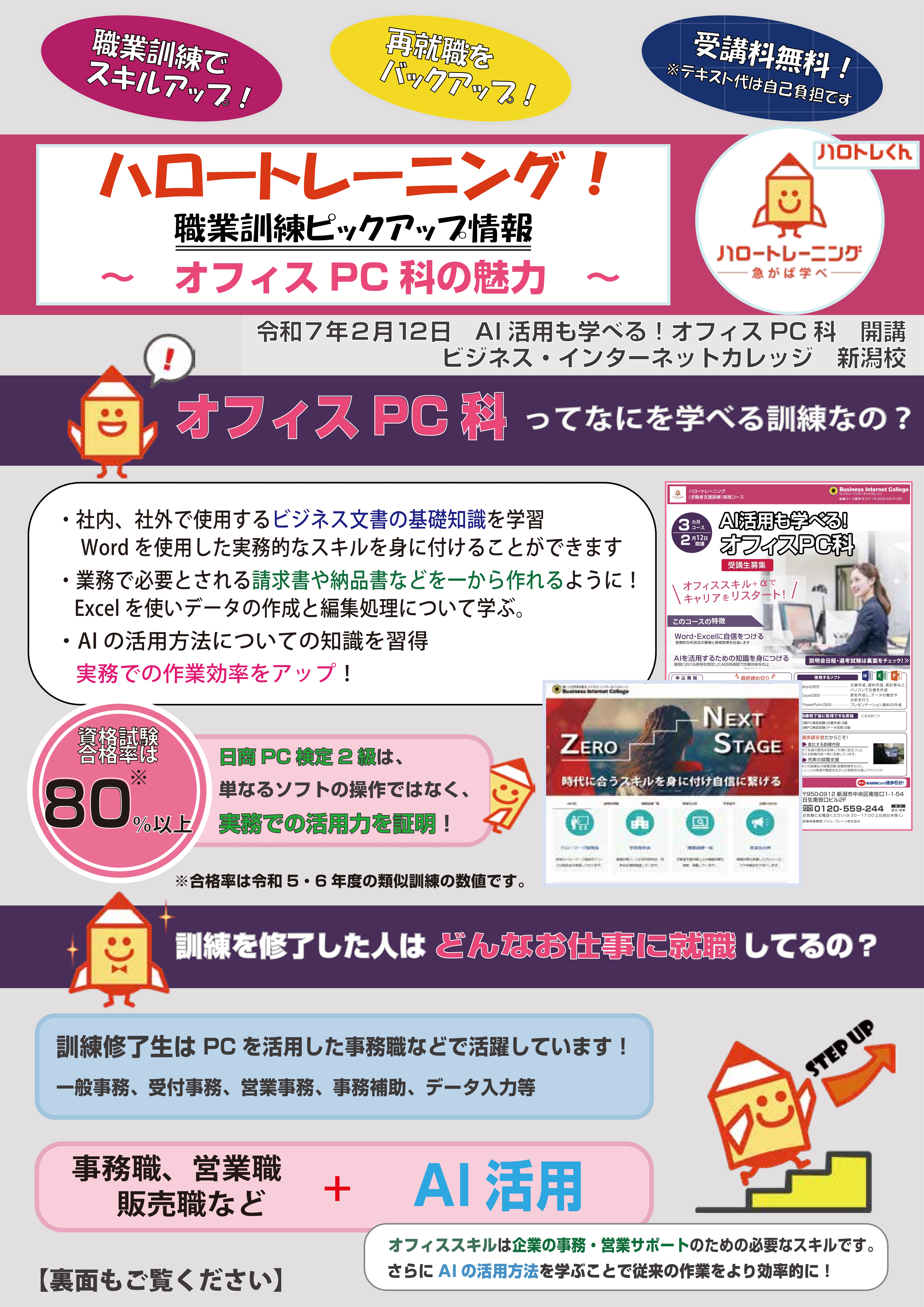 現在募集中の訓練コースの補足情報を掲載しています。各コースでどのようなスキルを学べるのか、訓練で身につけたスキルが就職先でどのように活かされているのかなどを紹介していますので、ぜひご覧ください!