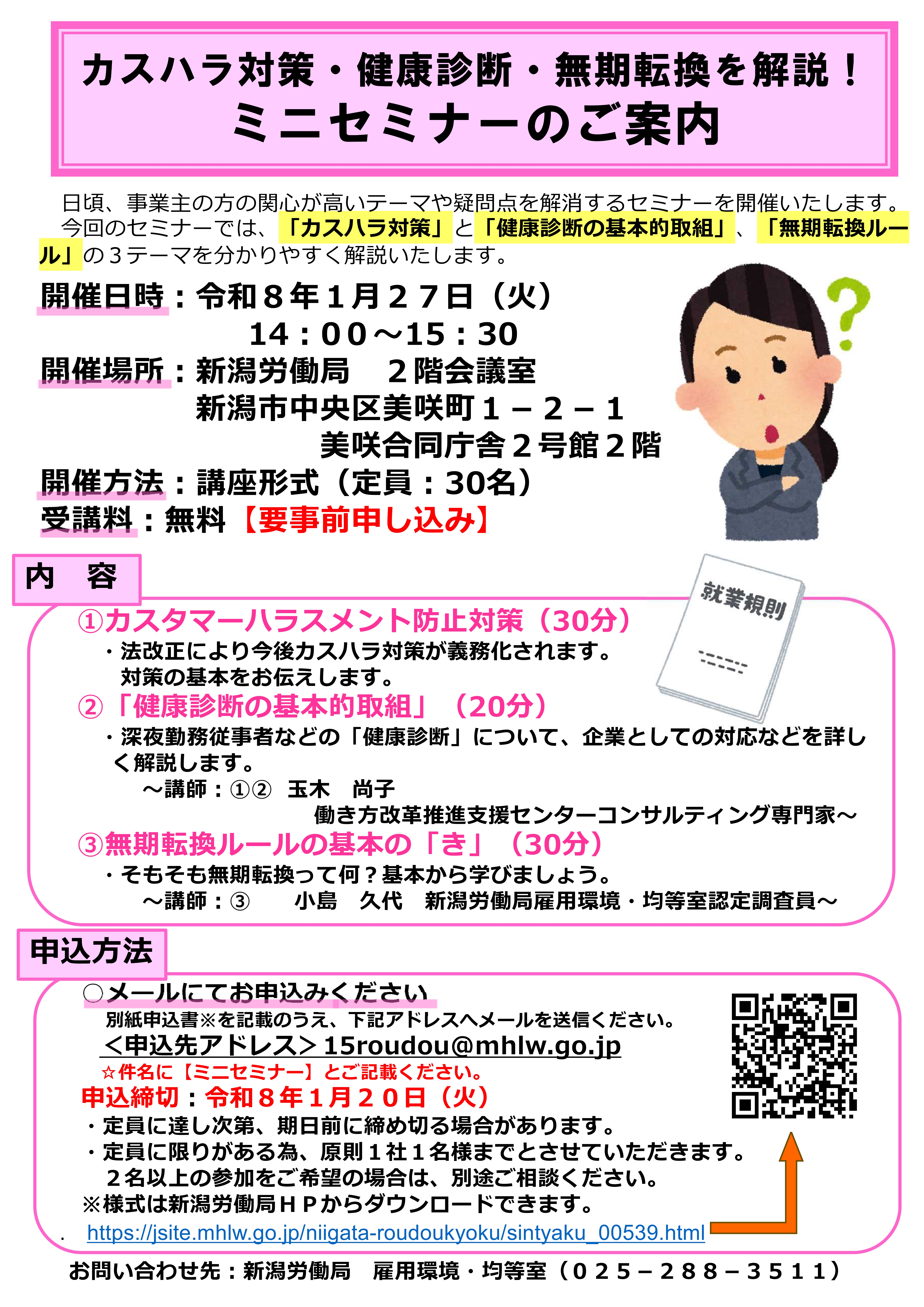 「カスハラ対策・健康診断・無期転換を解説! ミニセミナー」を開催します