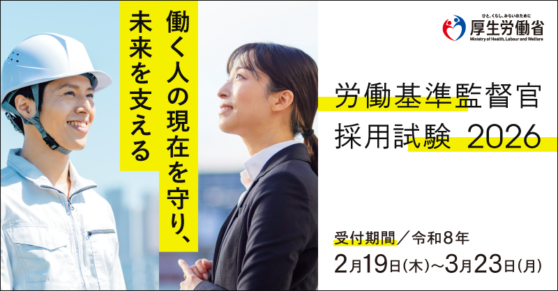 | 労働基準監督官は、労働基準関係法令に基づいてあらゆる職場に立ち入り、法に定める基準を事業主に守らせることにより、労働条件の確保・向上、働く人の安全や健康の確保を図ることを任務とする厚生労働省の専門職員です! 〇 労働基準監督官の採用の概要は、こちら(厚生労働省HPへ)をご覧ください。 先輩監督官インタビューや監督官採用試験受験案内などをご覧になれます。 〇 労働基準監督官採用試験 2026パンフレット(PDF:10,985KB) ⇒ ![]() 〇 労働基準監督官理工系区分パンフレット(PDF:20,827KB) ![]() 〇 2026年度 労働基準監督官採用試験 受験案内 (PDF:1,262KB) ⇒ 〇 労働基準監督官PR動画 【業務風景バージョン】(リンク) ![]() 【監督官目線バージョン】(リンク) ![]() 【労働者目線バージョン】(リンク) ![]() 〇 (参考)「RJパトロール!」アニメ動画 ・労働基準監督官の仕事を知るべし!(リンク) ・労働基準監督官の仕事に密着せよ!(リンク) ・その他の動画(リンク) ☆ 新潟労働局資料 〇 新潟労働局での勤務の魅力を紹介!(労働基準監督官編) (PDF:1.10MB)⇒ 〇 新潟労働局若手監督官からのメッセージ(PDF:553KB) |