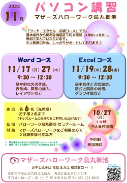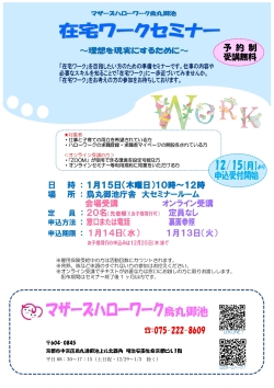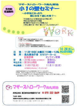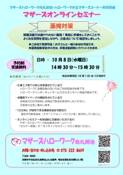 - セミナーには、烏丸御池庁舎で受講いただけるものだけでなく ZOOMを利用したオンラインセミナーや 外部会場で実施する出張セミナーもございます。お子様連れでご参加いただけます。