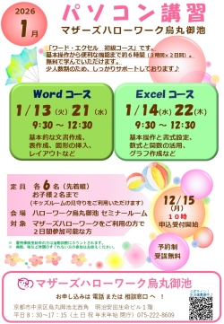 ワード・エクセルコースがあり1日3時間×2日間です。2日間の両方に参加が必要となります。