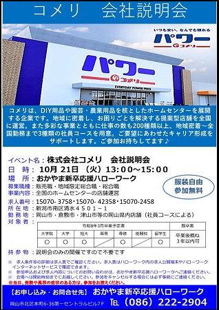 おかやま新卒応援ハローワークで実施予定の企業説明会の一覧です。