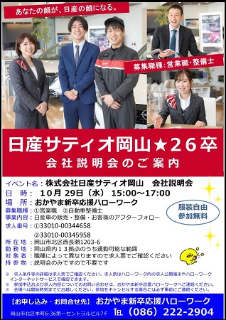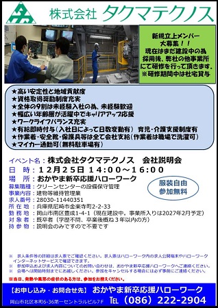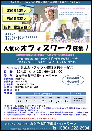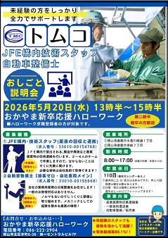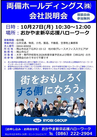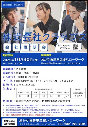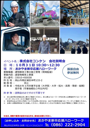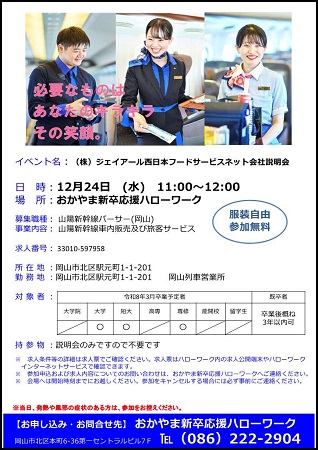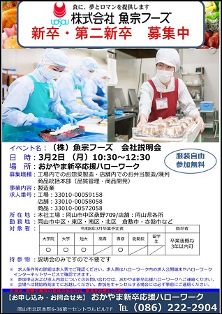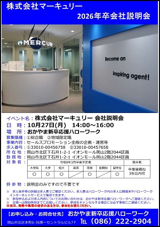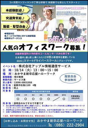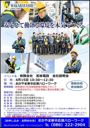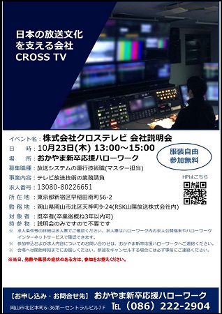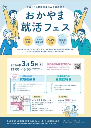 参加希望の方は、おかやま新卒応援ハローワークまで、