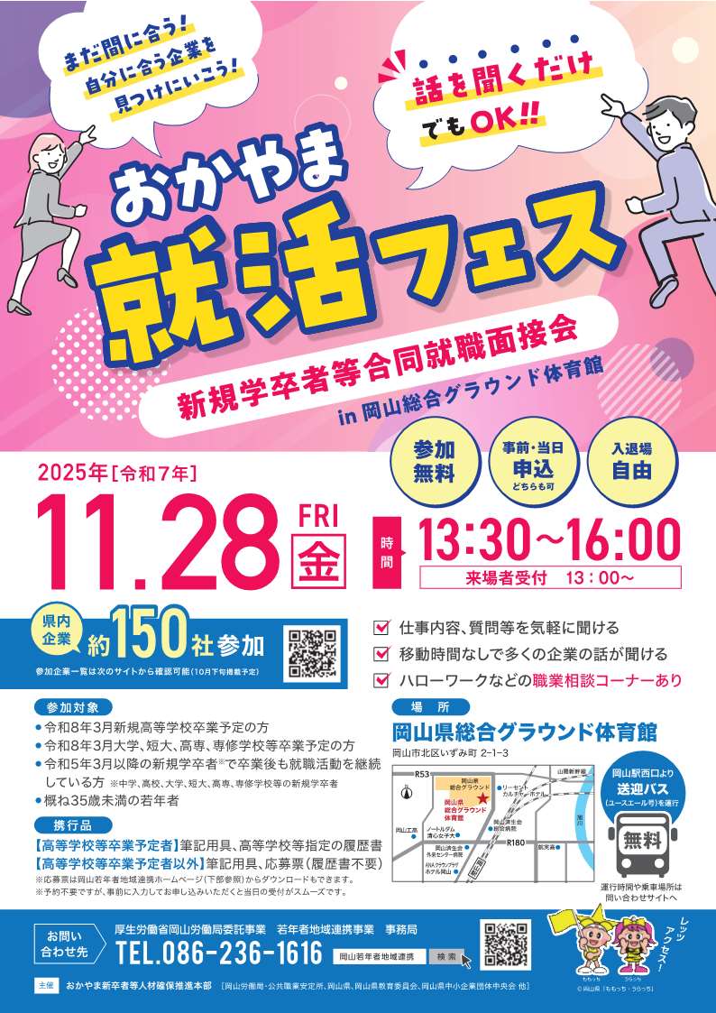 【11/28(金)開催】新規学卒者等合同就職面接会『おかやま就活フェス』のご案内