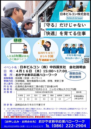 個別会社説明会(おかやま新卒応援ハローワーク所内開催)