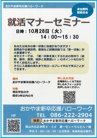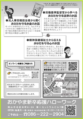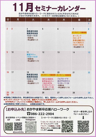 ●セミナーのお申し込みは窓口・電話(086-222-2904)・申し込みフォームからお願いします。