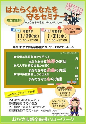 はたらくあなたを守るセミナー ―あなたを守る三つのコンテンツ― ※対面・オンライン併用